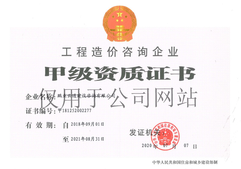工程招標代理甲級、工程造價咨詢甲級、工程監(jiān)理甲級、中央投資項目招標代理甲級、政府采購代理甲級